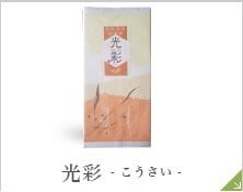 光彩は、茶畑の真髄を収めた深い風味と香りを持つ深蒸し茶です。茶葉は、その生命力が一番旺盛なときに丹精込めて収穫され、その力強さと輝きを茶杯に閉じ込めています。